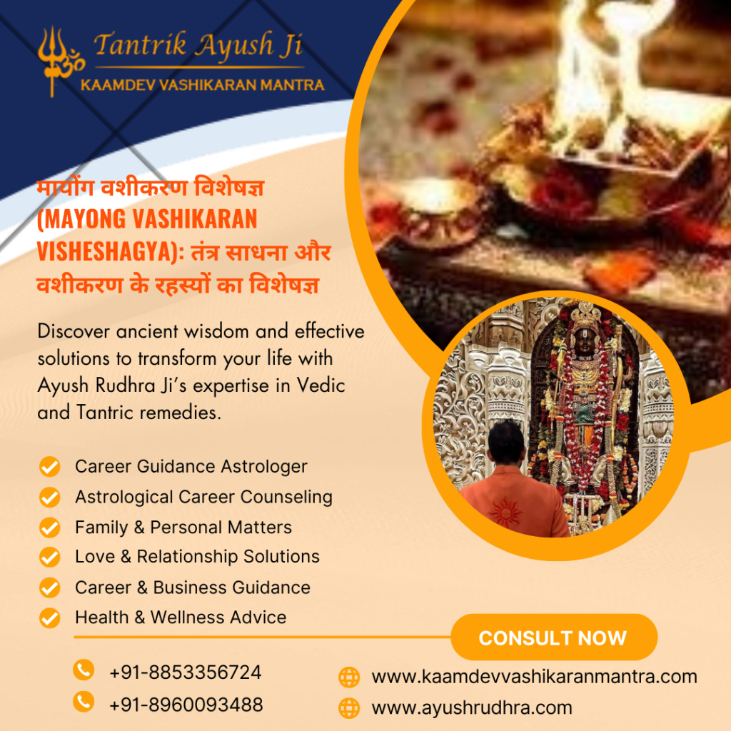 यदि आप अपनी जीवन समस्याओं का समाधान वशीकरण के माध्यम से पाना चाहते हैं, तो आपको एक सिद्ध मायोंग वशीकरण विशेषज्ञ से संपर्क करना होगा। तांत्रिक आयुष रुद्र जी, जो मायोंग तंत्र विद्या में प्रवीण हैं, आपको सही मार्गदर्शन प्रदान कर सकते हैं। वे वशीकरण मंत्रों के माध्यम से आपके जीवन में सकारात्मक परिवर्तन लाने में सक्षम हैं।