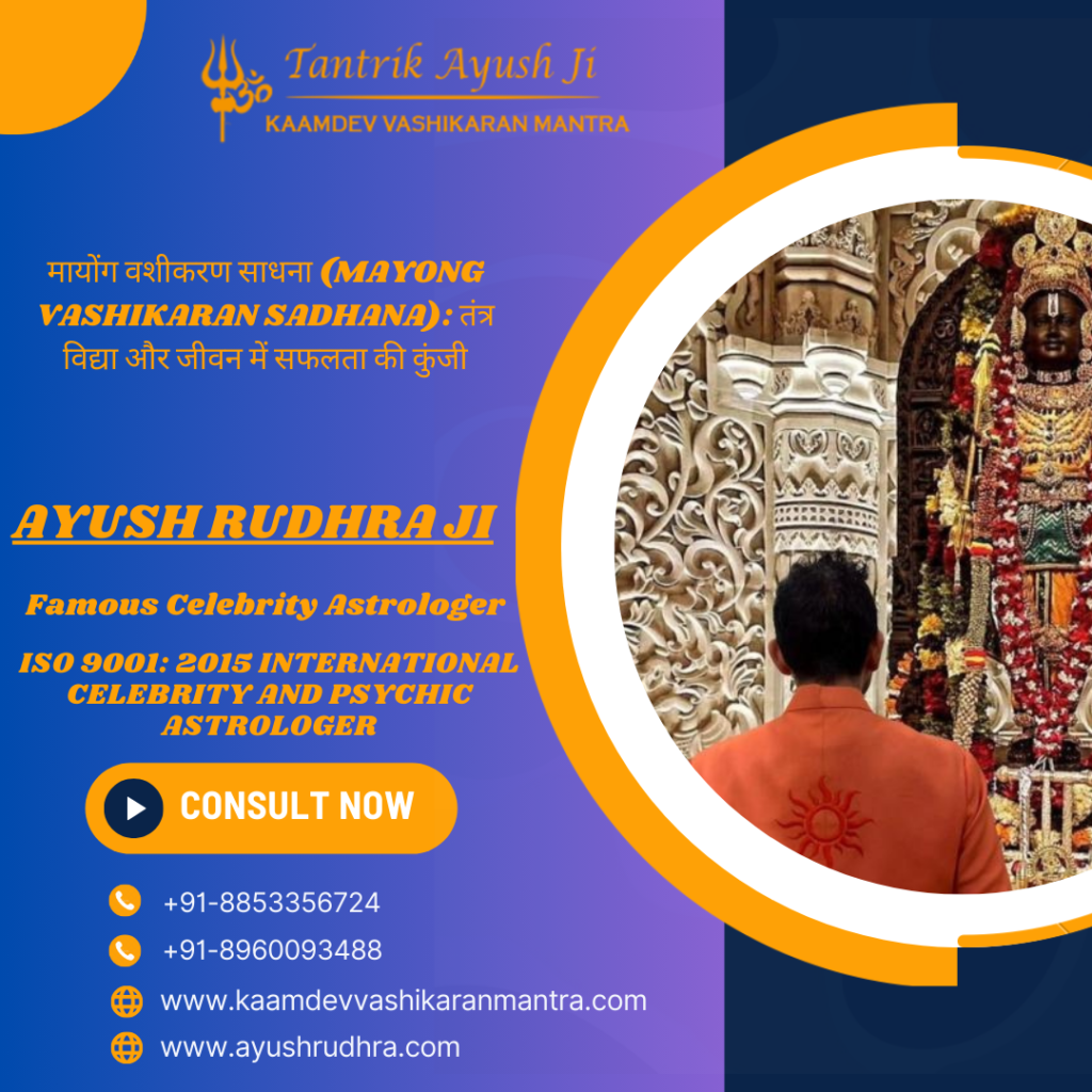मायोंग वशीकरण साधना एक शक्तिशाली तंत्र विद्या है जो किसी भी व्यक्ति को अपने जीवन की समस्याओं से उबारने में मदद कर सकती है। इसके माध्यम से व्यक्ति अपनी इच्छाओं और लक्ष्यों को प्राप्त कर सकता है। यदि आप अपनी समस्याओं का समाधान चाहते हैं, तो मायोंग वशीकरण साधना आपके लिए एक उत्तम उपाय हो सकता है। तांत्रिक आयुष रुद्र जी की मदद से आप इस साधना का सही और प्रभावी तरीके से अभ्यास करके अपने जीवन को बेहतर बना सकते हैं।