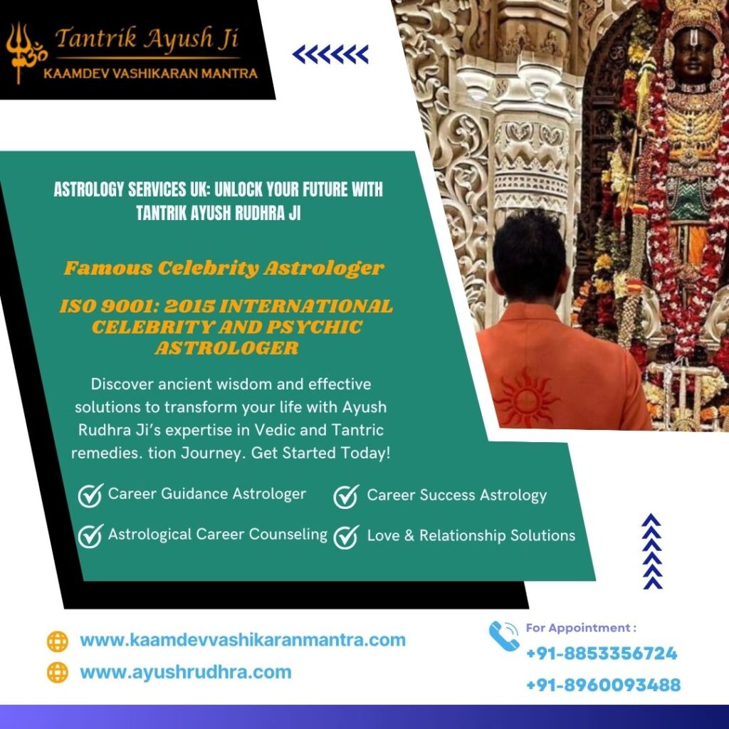 When it comes to Astrology Services UK, Tantrik Ayush Rudhra Ji offers a unique blend of traditional Vedic astrology and spiritual practices. With years of experience, he provides personalized consultations that help individuals understand their life’s path and overcome obstacles. Here’s how he can assist you: