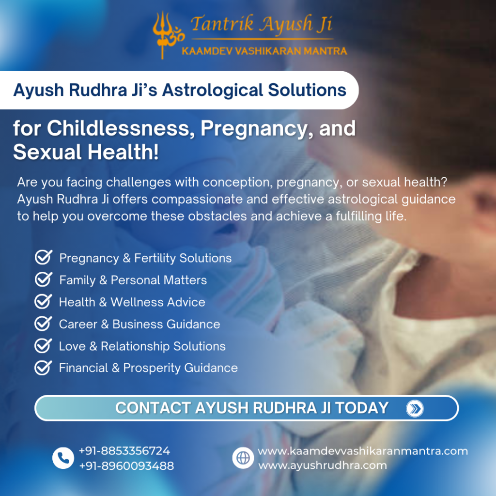 Ayush Rudhra Ji’s expertise in Vedic astrology offers a beacon of hope for those facing challenges related to childlessness, pregnancy, and sexual health. His personalized approach, grounded in ancient wisdom, provides effective and holistic solutions that complement modern medical practices. By addressing the root causes and aligning with cosmic energies, Ayush Rudhra Ji helps individuals and couples achieve their dreams of parenthood, maintain healthy pregnancies, and enhance their sexual well-being.