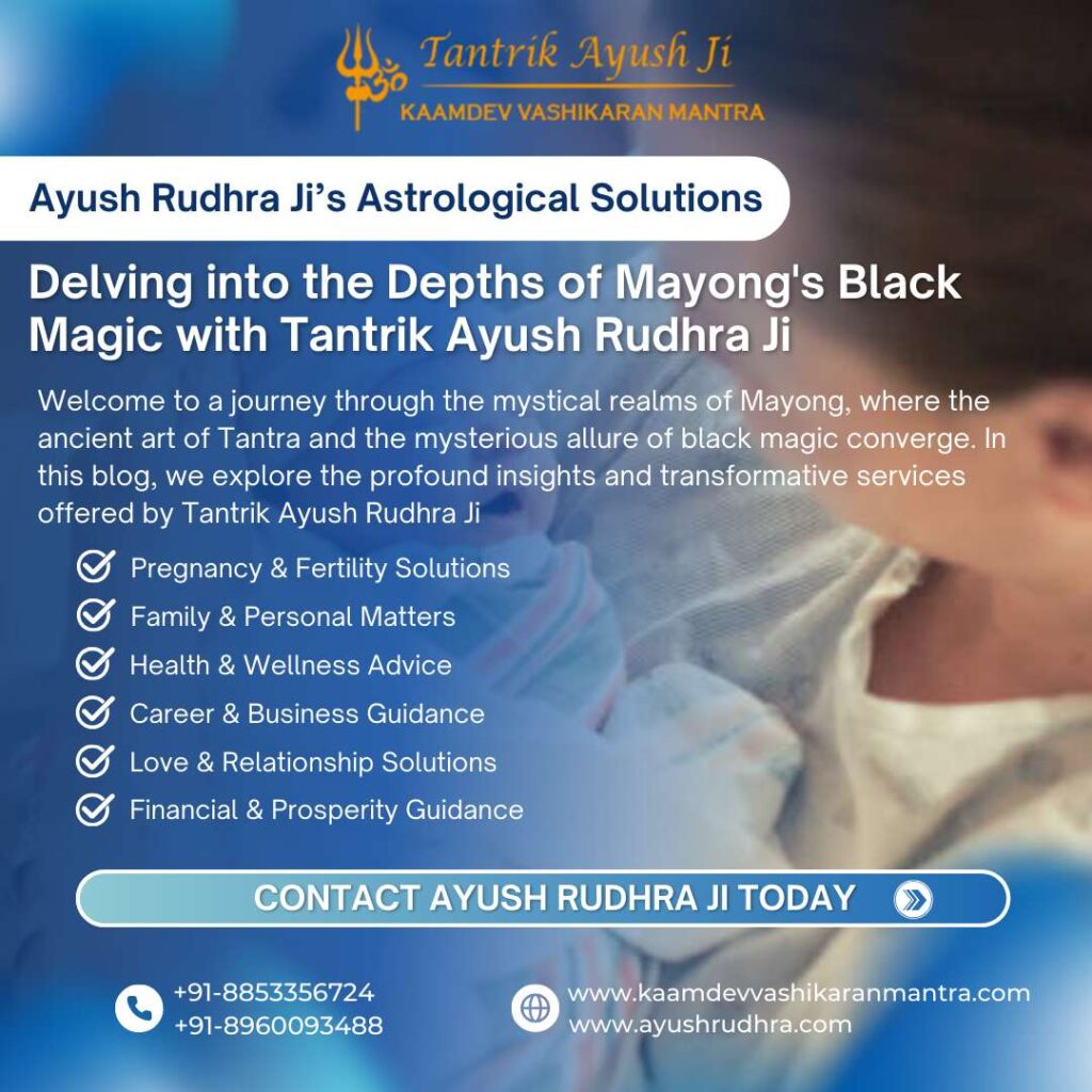 Embrace the mystical legacy of Mayong Black Magic Contact Number and experience the power of ancient rituals and modern solutions with Tantrik Ayush Rudhra Ji. Discover the transformative potential of Tantra, Vashikaran, and black magic remedies in your quest for a balanced and fulfilling life.