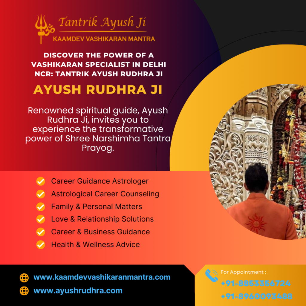 Delhi NCR, being a hub of diverse cultures and lifestyles, often witnesses complex personal and professional challenges. Tantrik Ayush Rudhra Ji’s understanding of these unique dynamics makes him the ideal vashikaran specialist in Delhi NCR. His proven expertise, compassionate approach, and commitment to his clients’ well-being make him stand out.