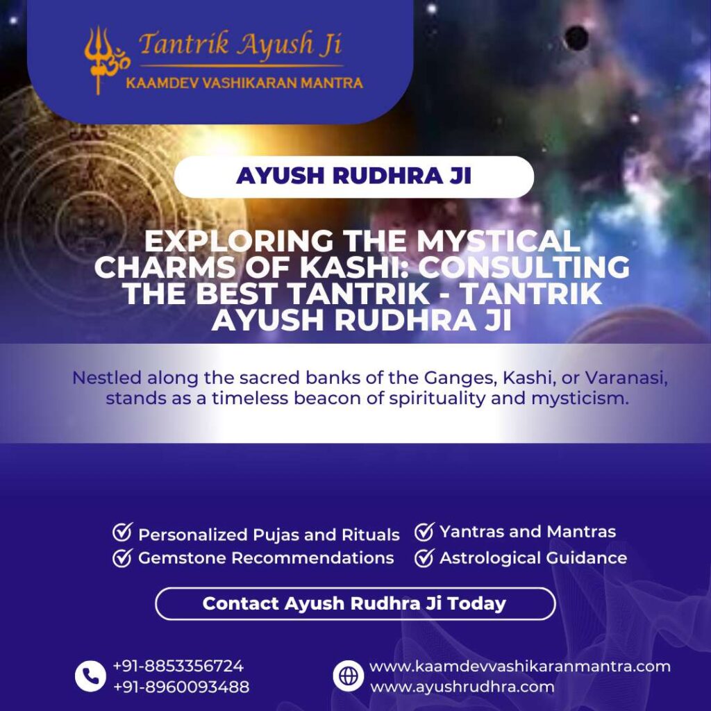 For those seeking spiritual clarity, divine intervention, or solutions to life’s challenges in the spiritual heartland of Kashi, Tantrik Ayush Rudhra Ji offers his expertise and guidance. Contact him at +91-8960093488 or visit his website at kaamdevvashikaranmantra.com to schedule a consultation.