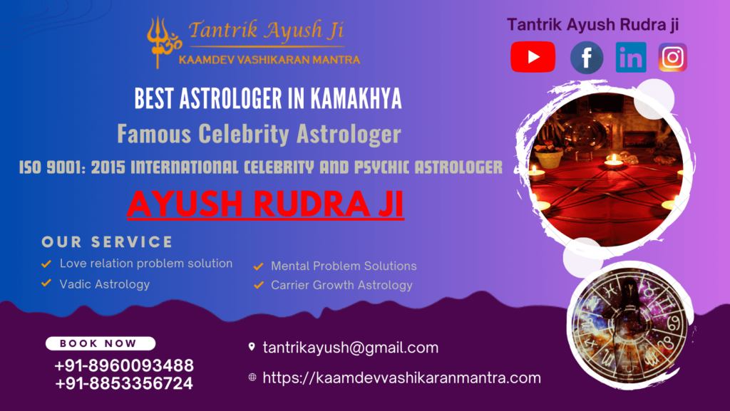 Renowned as a Best Tantrik in Kamakhya Temple, Guwahati, Assam, Astrologer Tantrik Ayush Rudhra ji shines as a leading Tantrik and Vashikaran Expert. Specializing in Tantrik Vidhya (Kamakhya Temple) and astrology, he has established a remarkable presence in Guwahati and is esteemed as the foremost Tantrik Vidhya expert across various Asian countries and continents. Tantrik Ayush Rudhra ji is celebrated for providing round-the-clock solutions to an array of personal and professional challenges, including Love Relationship Problems, Marriage Life Issues, Tantra Vidya & Black Magic Kriya, Vashikaran Specialist & Kali Sadhana Kriya Expert, Business, financial, legal, educational, health, and mental peace concerns, utilizing palmistry and future prediction.