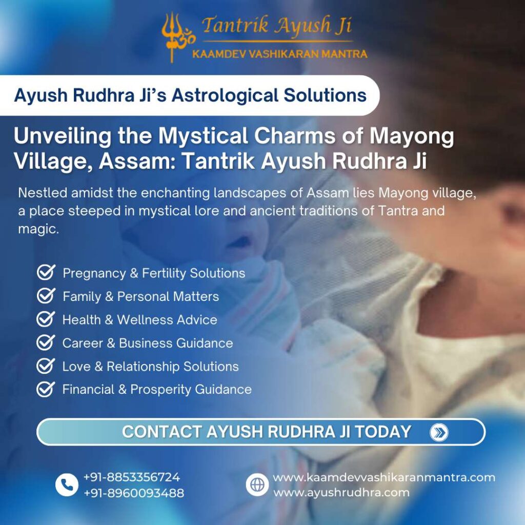 Nestled amidst the enchanting landscapes of Assam lies Mayong village, a place steeped in mystical lore and ancient traditions of Tantra and magic. At the heart of this mystical realm stands Tantrik Ayush Rudhra Ji, a revered figure known for his profound knowledge of Vashikaran, astrology, and spiritual healing. This blog delves into the mystical allure of Mayong village and explores the transformative services offered by Tantrik Ayush Rudhra Ji.
