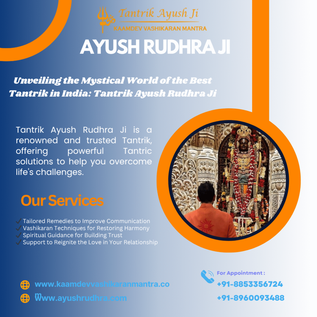 The search for the best tantrik in India can often feel overwhelming, but with Tantrik Ayush Rudhra Ji, you can rest assured that you are in the hands of a dedicated and experienced spiritual guide. His deep knowledge of Tantra, ethical approach, and proven success in solving life’s problems make him one of the most respected tantriks in India. Whether you are seeking love, success, healing, or protection, Tantrik Ayush Rudhra Ji can help you unlock the spiritual power you need to transform your life. Reach out today and take the first step toward a brighter, more fulfilled future.